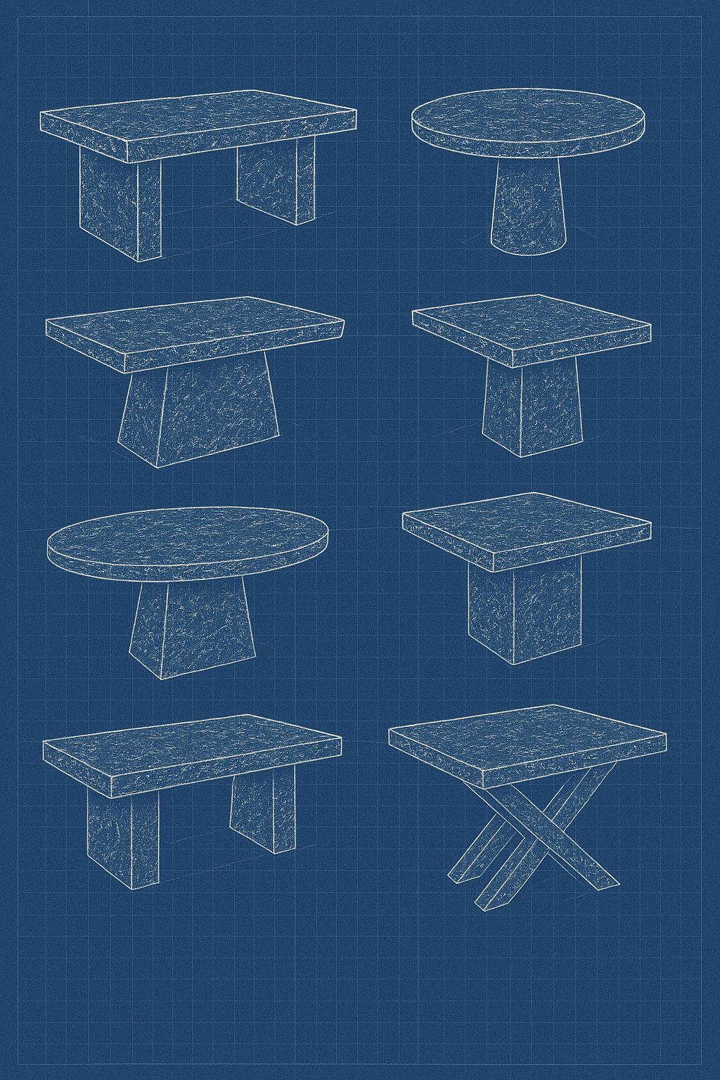 Here’s a guide to the most sought-after stone table shapes, each offering unique fabrication possibilities and design impact.